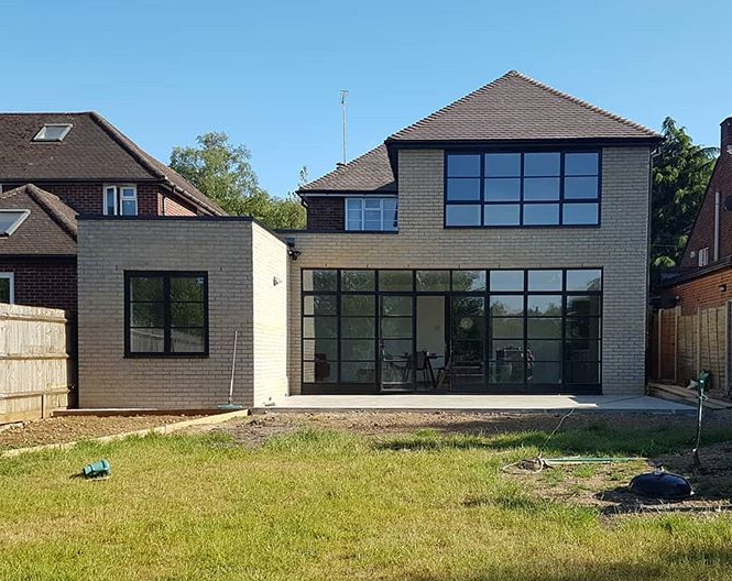 This 1920’s Art Deco house with its original Crittall windows captured our client’s imagination. As an unimproved stand alone house with only 3 bedrooms, it provided a lovely opportunity to make some big changes. We added a large contemporary living space, bringing living into the garden, and a proper main en-suite bedroom and changed the arrival to celebrate the new additions while adding a buggy loving mud room.